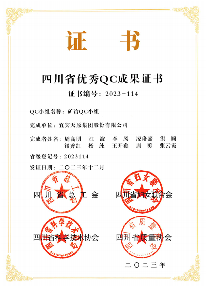 矿冶QC小组“磷尾矿资源化使用手艺的研究”荣获四川省优异质量治理小组运动奖