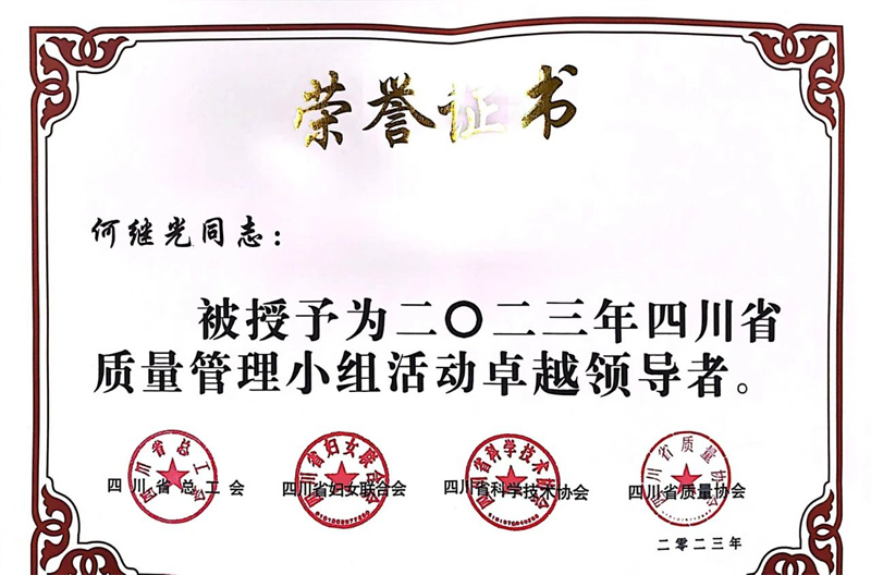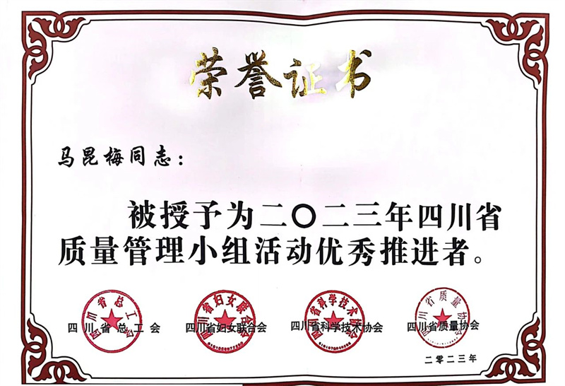 四川省质量治理小组运动优异推进者