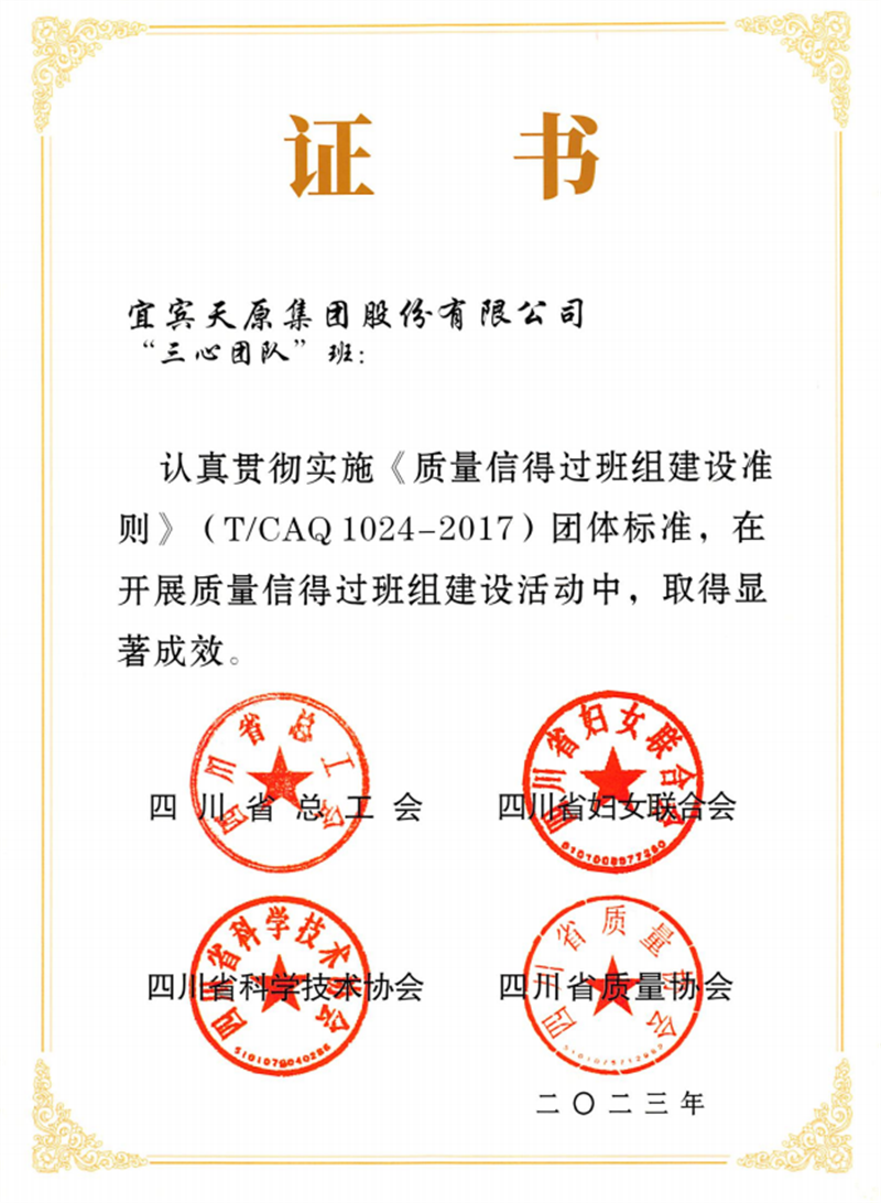 “三心团队”班组荣获“四川省质量信得过班组