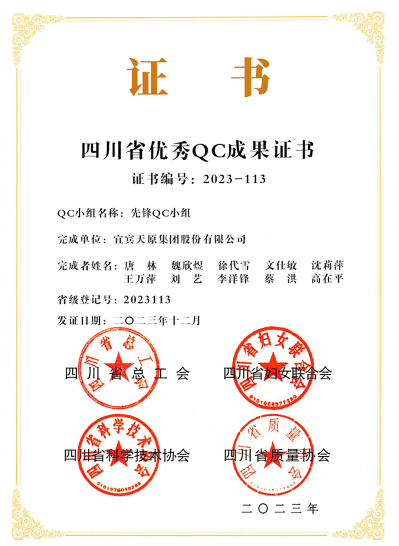 先锋QC小组“PVC力化学助剂的研制”荣获四川省优异质量治理小组运动奖