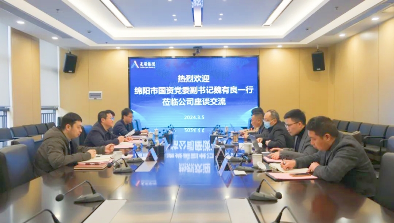 3月5日,绵阳市国资党委副书记魏有良、绵阳市国资委四级调研员杨勇一行到尊龙凯时集团调研并座谈交流,尊龙凯时集团党委副书记、总司理廖周荣陪同座谈。
