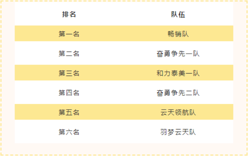 为了勉励职工加入的起劲性,本次角逐设置奖励前六名。经由一天强烈的比拼,最终获得前6名的步队划分是:
